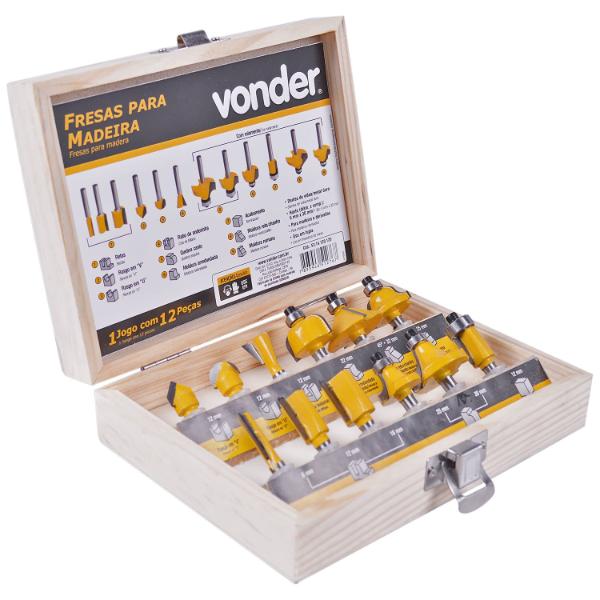 O Jogo de fresas para madeira com 12 peças Vonder é indicado para trabalhos em madeira e derivados